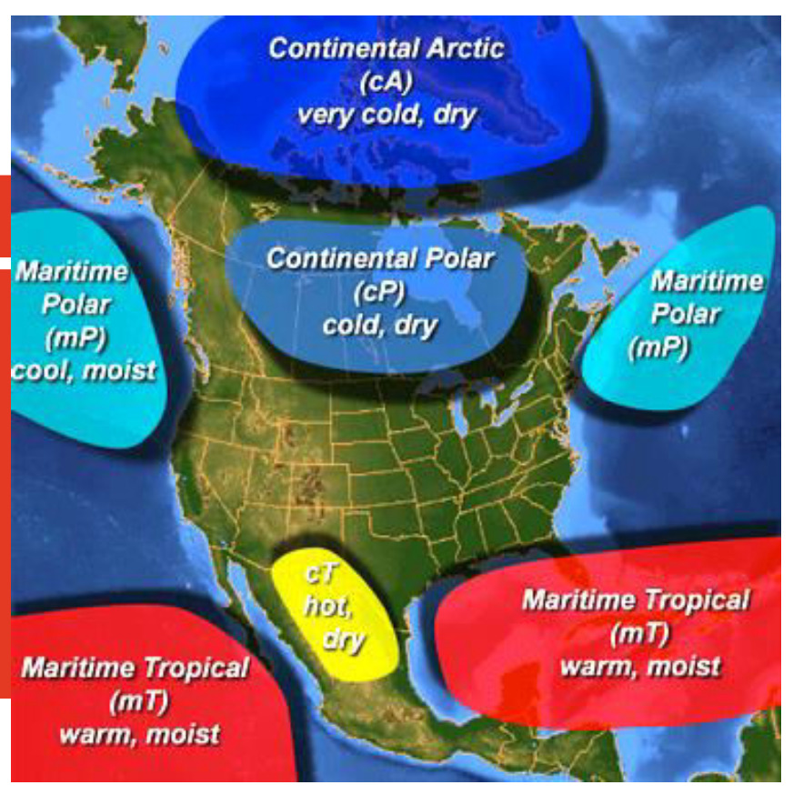 - Air mass T’s form within a warm, moist air mass, are in no way associate with fronts