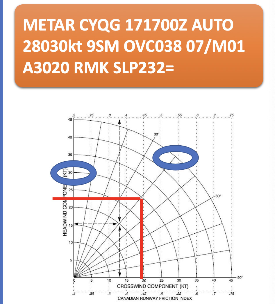 After you know now it is 10 degrees off runway 30, you look at the chart to calculate that.