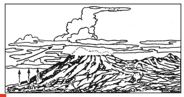Caused by orographic lift, normally obscrubed by stratus cloud on windward side.
