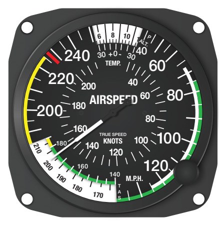 Yellow: “Caution speed” the lowest limit of the arc is the Maximum Structural Cruising Speed (Vno).