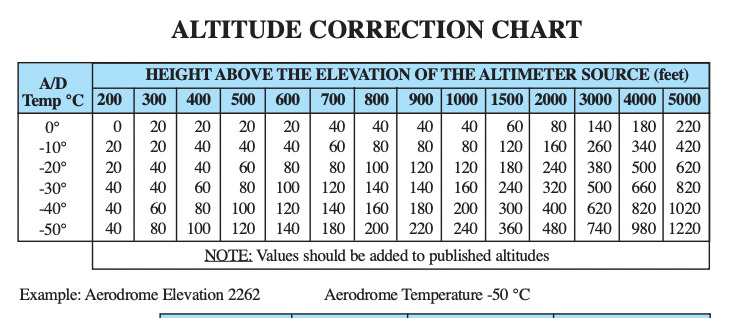 When flying at temperatures below or near freezing, you must correct for the temperature.