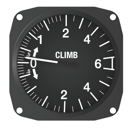 - Shows the rate of climb in ft per minute.