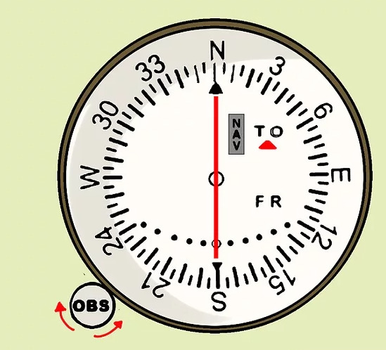 - Turn the OBS (Omni Bearing selector) until the CDI needle is centered and you have FROM.