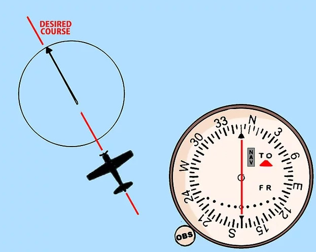 - Adjust for wind, if you find yourself blown off the radial, note the amount of deflection, then intercept the radial by turning the aircraft towards the radial twice as many degrees as the deflection. When the needle centers, turn only halfway back to the original heading to provide wind correction angle.