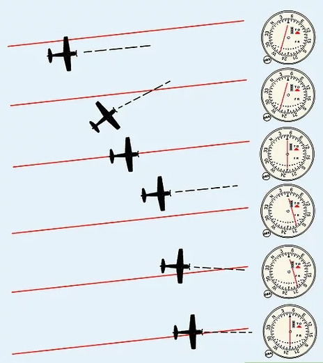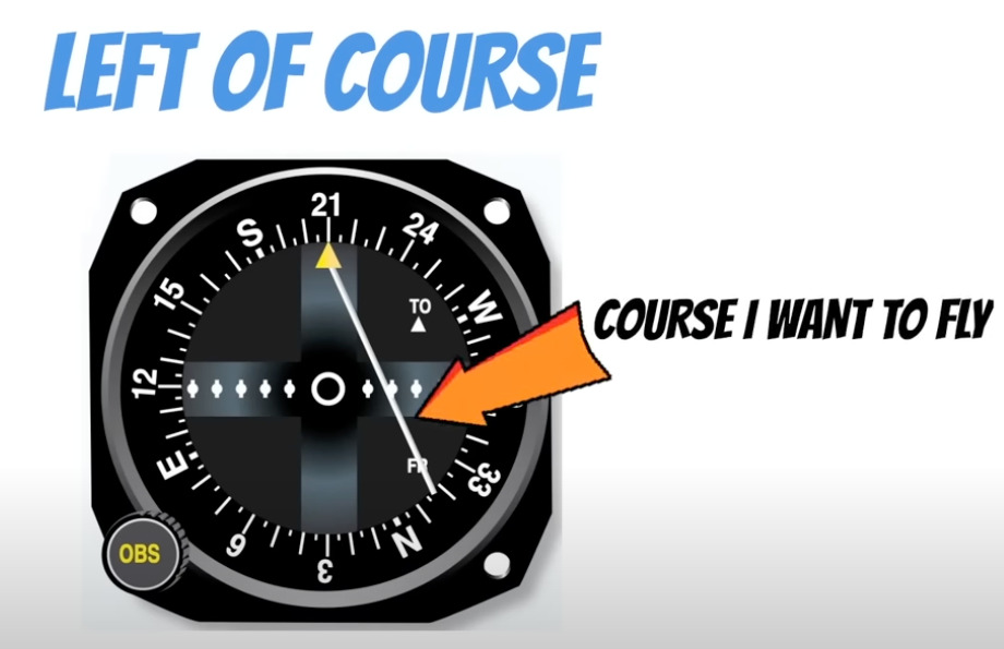 - CDI (Course Deviation Indicator): Verticle needle that shows left or right of the course