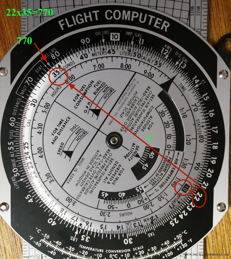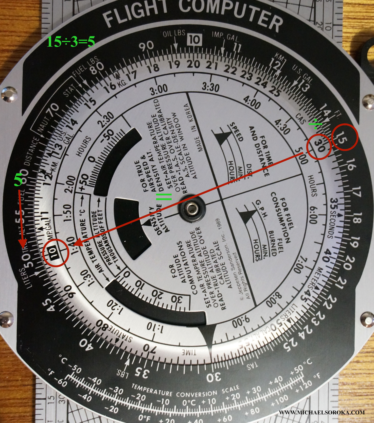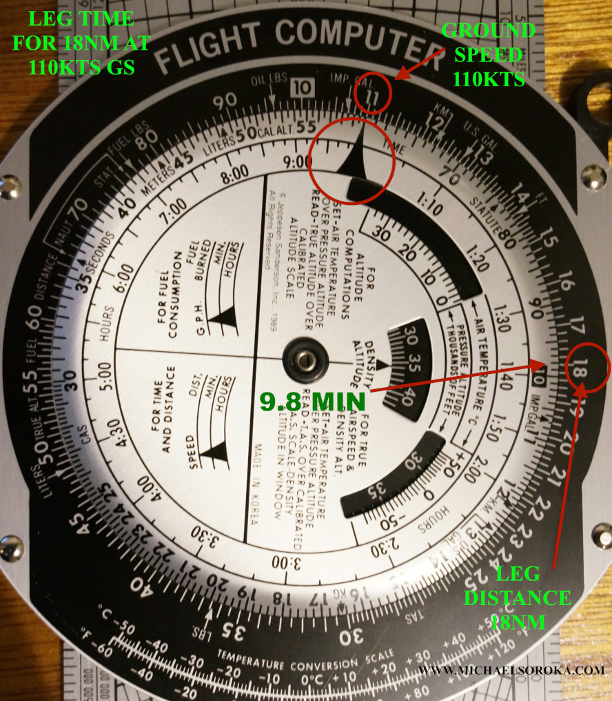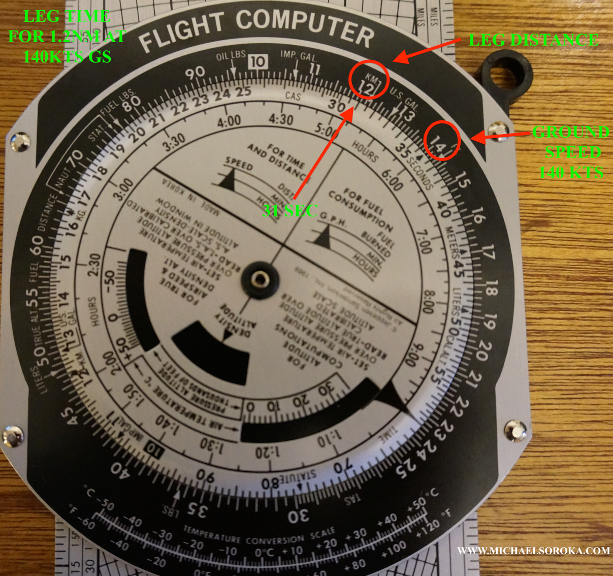 Calculating for leg hours (another example). You’ll use the INNER ring.