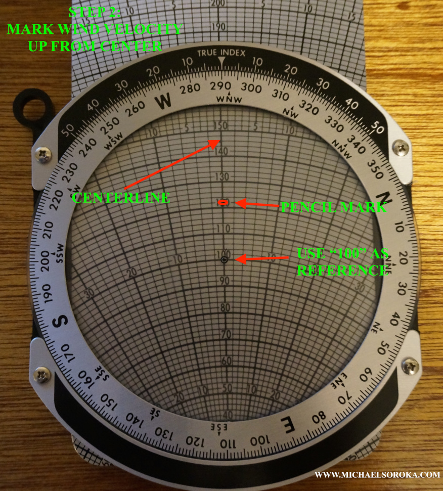 - Rotating dial and pencil friendly writing surface for determining wind correction