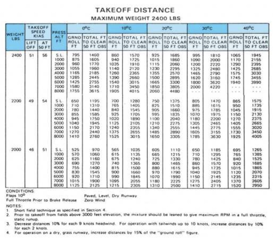 Example take-off chart from POH: